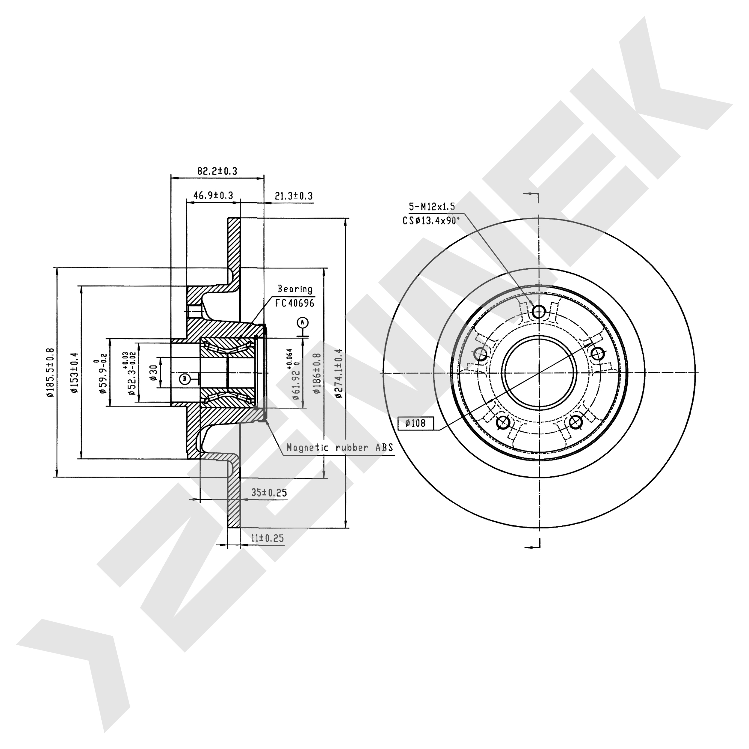 Not ventilated with bearing and ABS ring